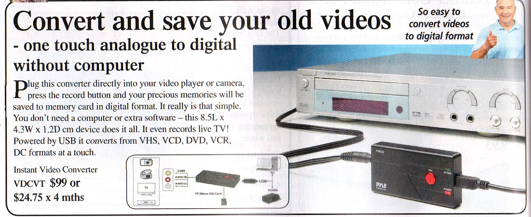 ps. I've tried unsuccessfully many times to convert my VHS tapes onto either HDD or DVDs. Any ideas there?