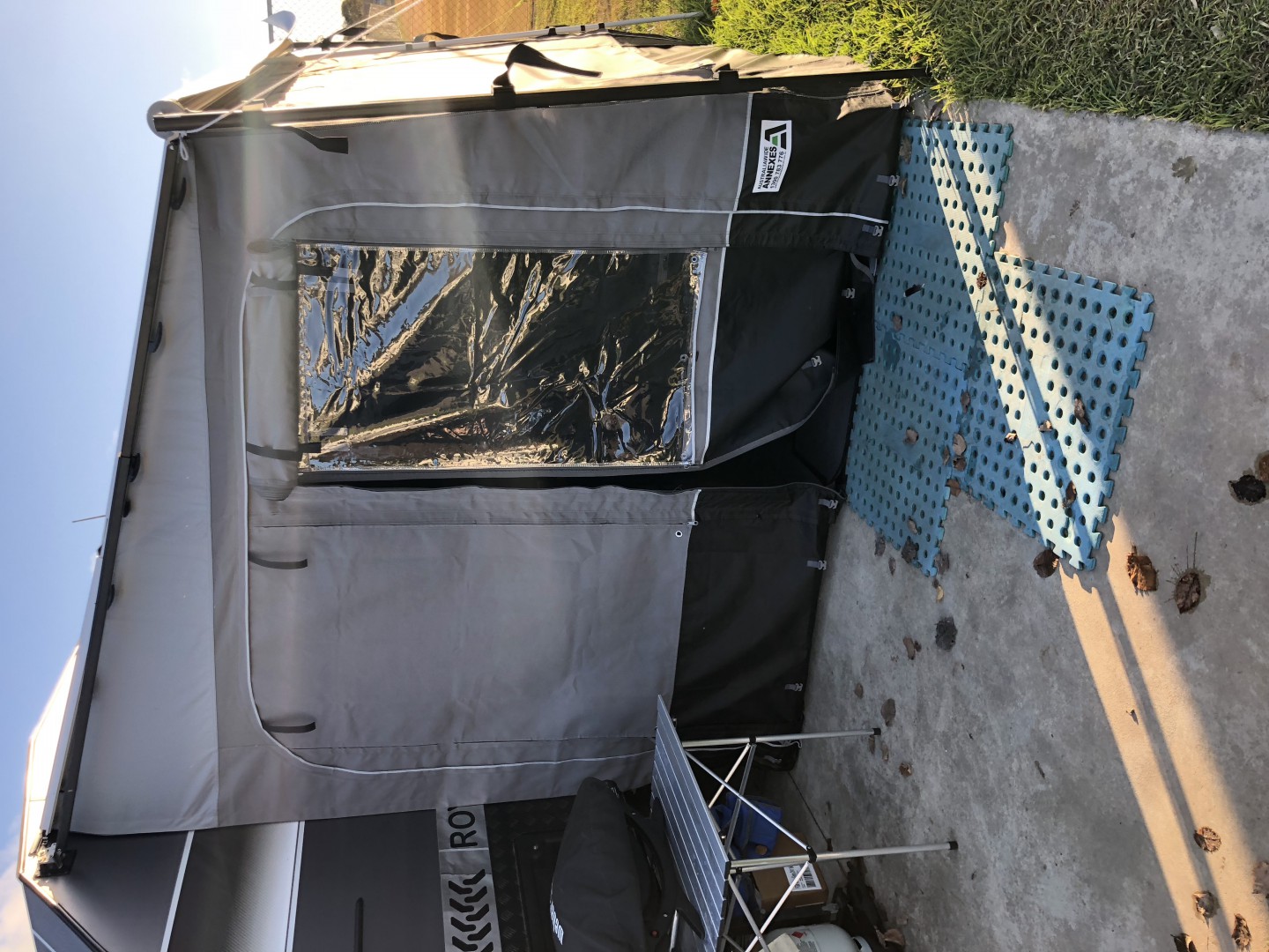 The first annexe I had was actually made by the people that I bought from and I was very happy with it except for the fact that it was made to the roll out width of the awning at 2.2 meters and not 2.4 as is required at most caravan parks with concrete slabs.