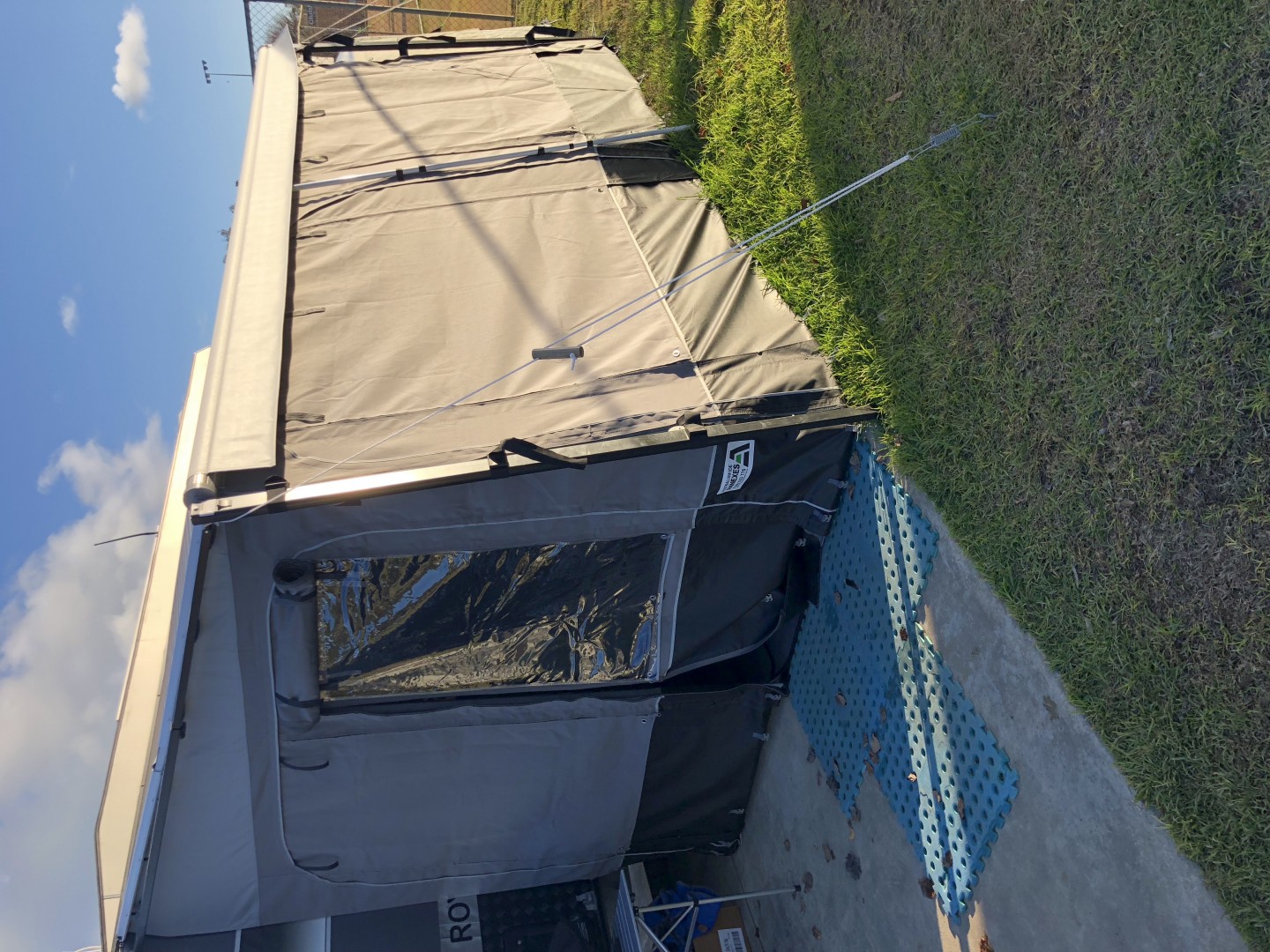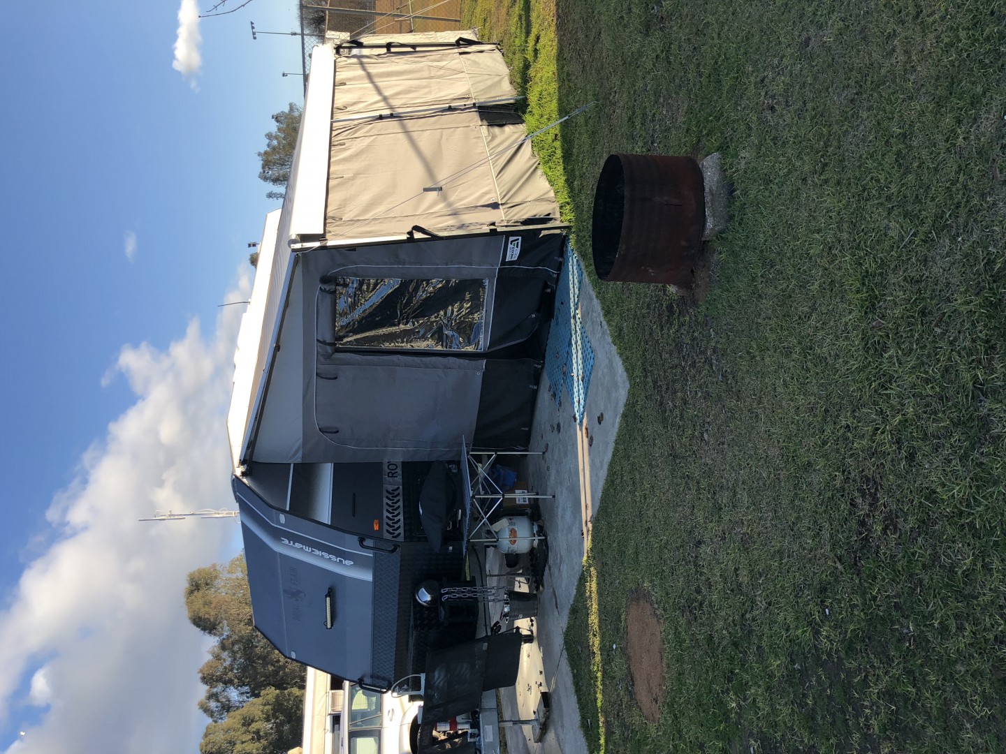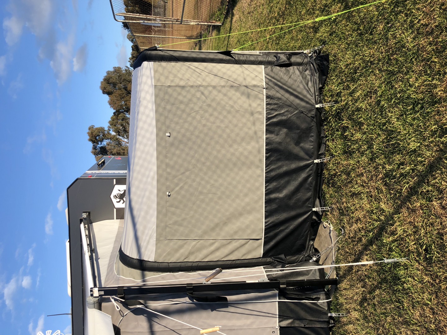 Thanks again., Yours looks alright but they al do until you test them out, but I am going to run some things by the fitter when he gets here today. We have chosen the Same colours as the van is grey and black also. Also putting on the extension room and the verandah over the bbq area pretty much the same as their pic on the website.