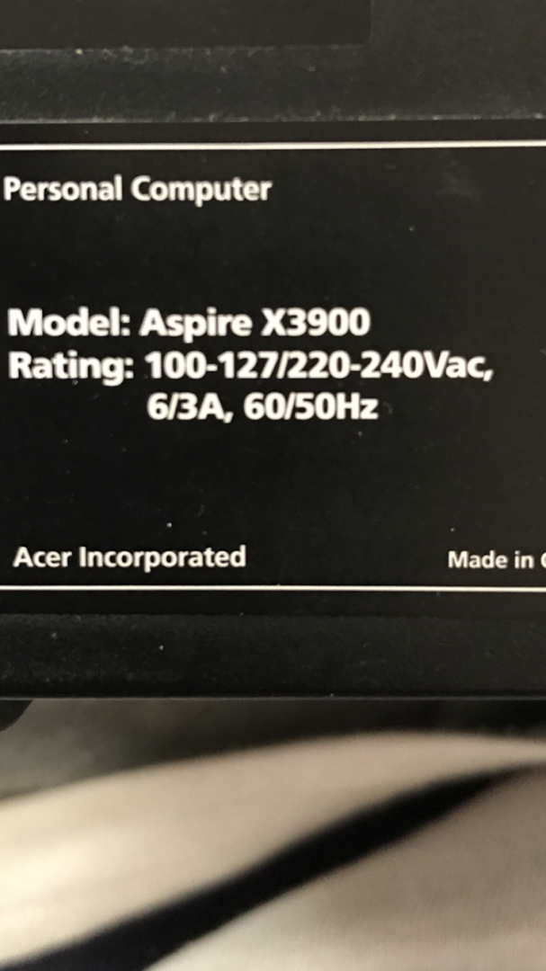 We are using a desktop and it doesnt have a power adaptor like you would with a laptop so its 240 volts in and no conversion to lower volts as you would with a laptop.