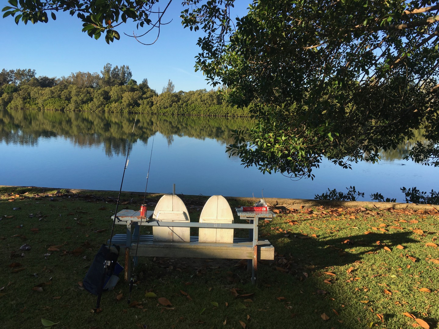 We just got back today from a trip up the mid north coast of NSW stayed for a few nights at Crescent Heads then headed further north when all the old surfies hit town for their annual long board competition. Great place 25deg.plenty of people fishing, surfing or swimming the only noise in the park happened at around 5pm when 1000s of lorikeets came into roost in the pine trees. Next we spent a week camped on the Belinger River at Repton (near Urunga) the back of the van only 3 metres from the water. Just had to throw out the line - we lived on Trevally for the first couple of days. Again no social life there either - we would light our BabyQ, crack a bottle of wine, sit back and enjoy the tranquility and the sound of the distant surf breaking. I have always loved spending time on the north coast of NSW ever since I was a kid when we surfed and camped on the ground using sleeping bags at what were then pretty isolated spots.The fact that other people have now discovered these places doesn't worry me, if it gets too crowded I'll just go and find somewhere else after all there is plenty of room out there and we are well set up to free camp when we need to.