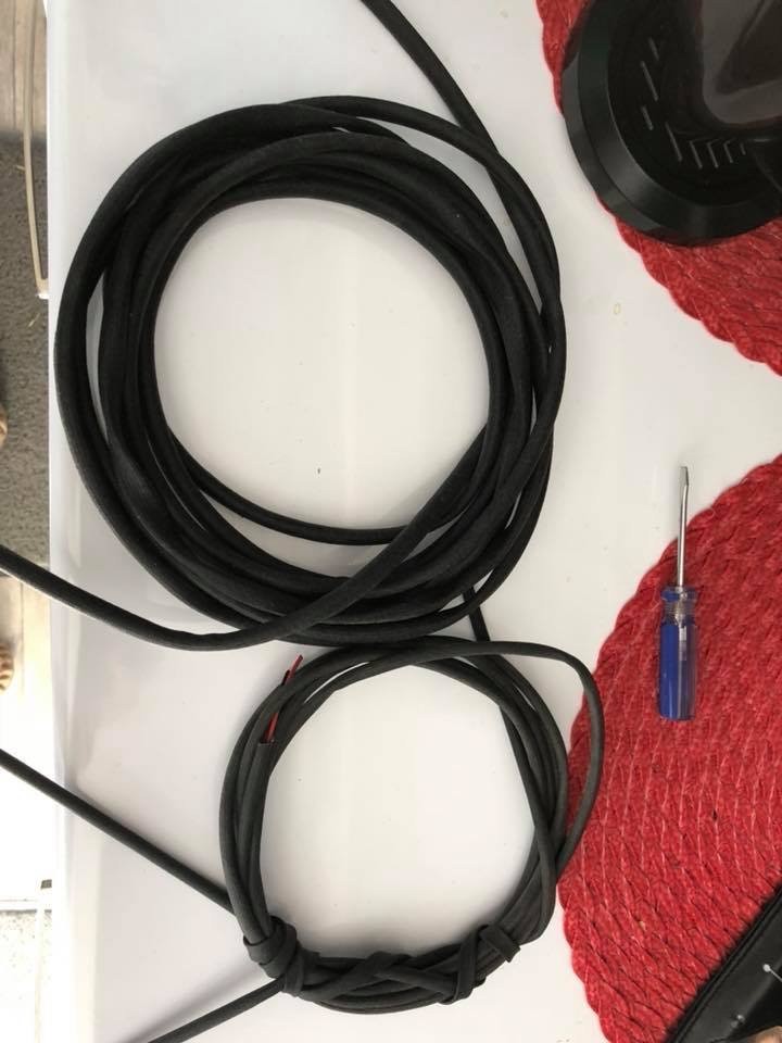 The heavy roll was from the power source end (connection to Anderson plug to 12v source). The smaller roll of wire, that is a very light gauge, was removed from the connection to the pump.