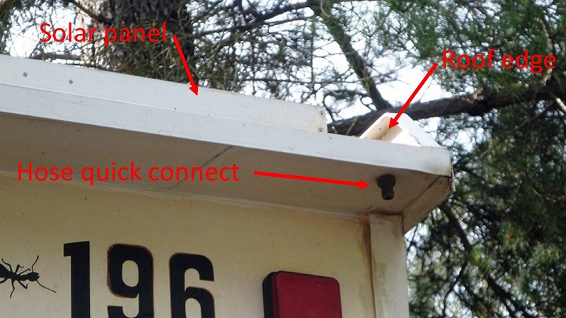 We catch water from the roof via a QC hose fitting that connects directly to the tank filler via gravity.