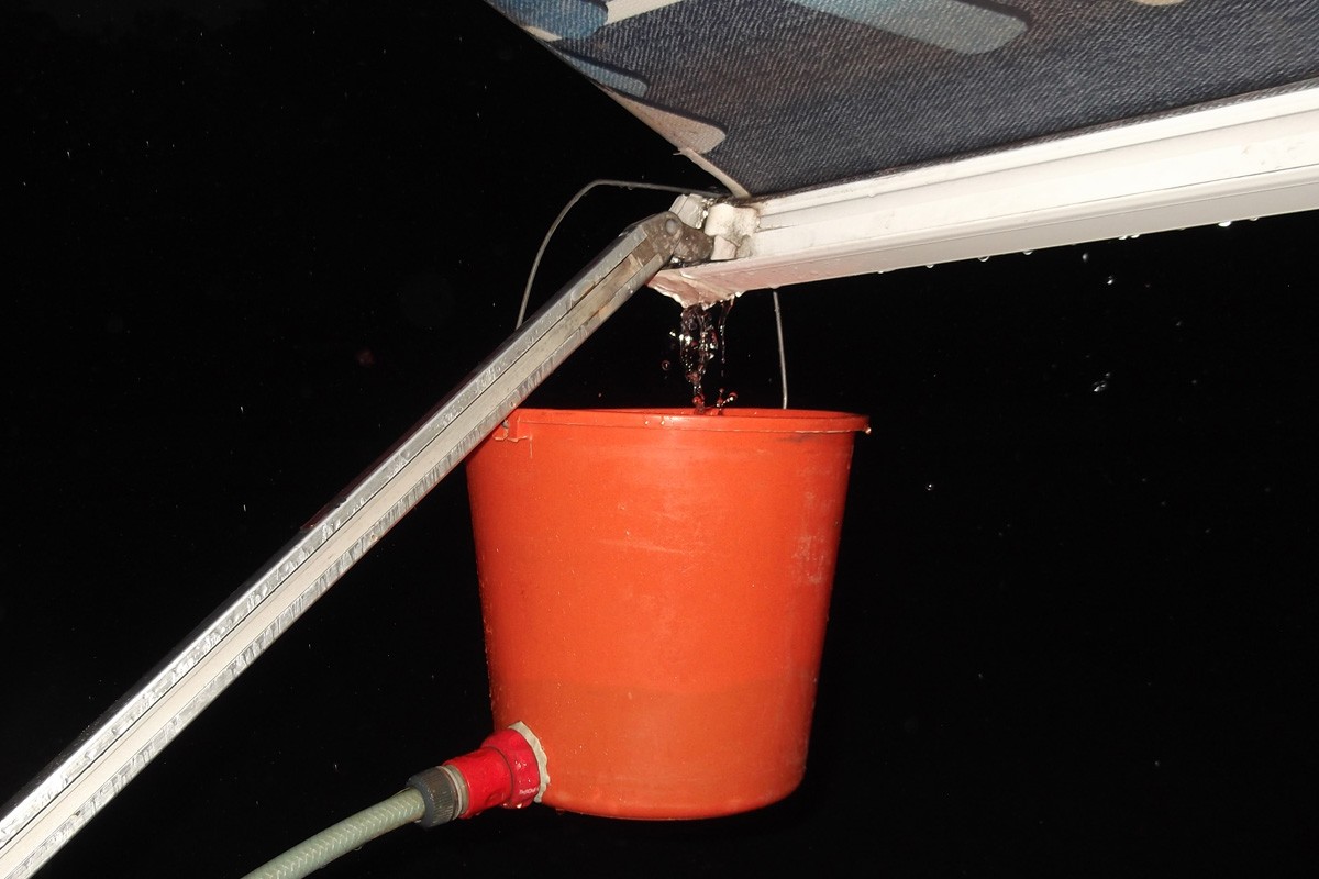 Its p-ssing down outside, and I am wondering if anyone catches this water. We have come by the gutter brackets for the awning, but its a pain to set up, and I am loath to have the awning up during rough weather. However the van roof has quite a catchment area, and it tends to flow down at just two points, it could be caught and pumped to the water tanks, using a bucket, float switch and pump.