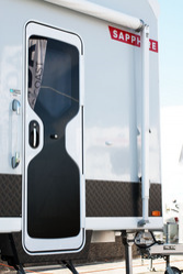 Here are pictures of the said door, the buffer stops are mounted on the door frame, where the four locking lugs locate. Two rubber stops per locking lug.