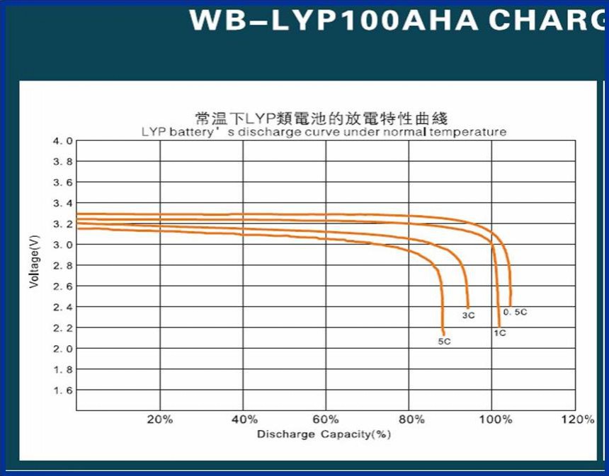 Often wondered just how much you could get out of a Winston 100Ah lithium battery at a C20 rate, the standard used by quality lead acid battery makes, the standard for quality lithium batteries is 0.5CA or fully discharged over 2 hrs not 20 hrs.