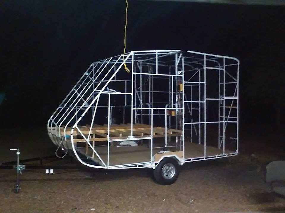 I know you are convinced that your construction method is the best (aren't we all?), but I suggest that a frameless glass/urethane/glass construction would be stronger and lighter. The A frame could also disappear by bringing the body all the way forward as a tapered structural box. The suspension and hitch being mounted to aluminium supports glued directly to the underbody. Too radical for some....? This motorhome was built by a friend. He made it all, including the sandwich panel. There is no steel in the camper body. The camper body has glass reinforced pads that are glued to rubber pads that are attached directly to the vehicle chassis. There are no bolts or screws anywhere.