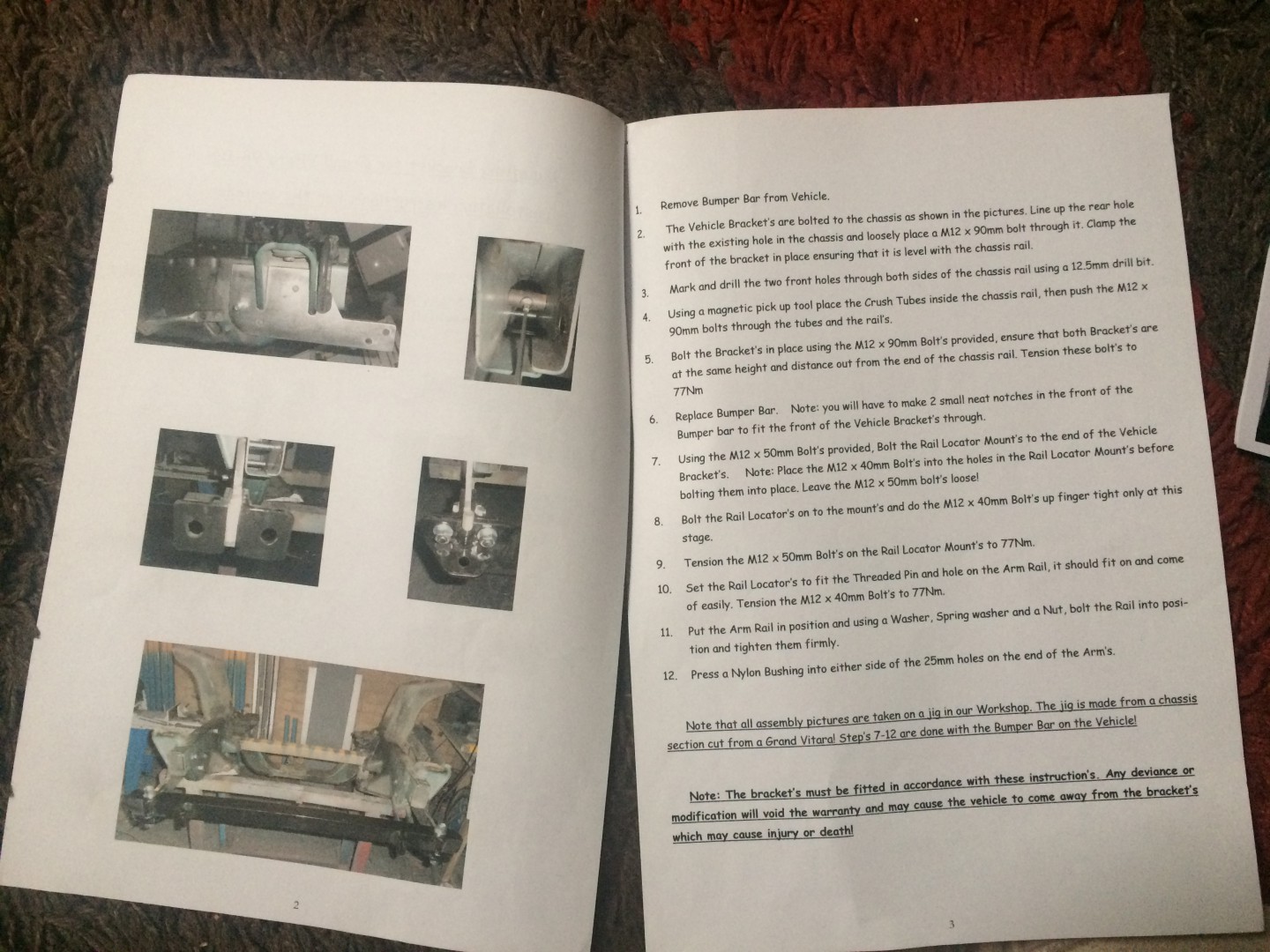 This is a complete A frame towing kit to suit a Suzuki Grand Vitara 1998-2005. Professionally engineered by Whitfield-Hall Fabrication of Victoria. Comes with all parts including cable brake kit which was never used. Vehicle has now been sold hence the reason for sale. Has complete instructions for installation. $1950 We are in Perth WA so it would be a local pickup.