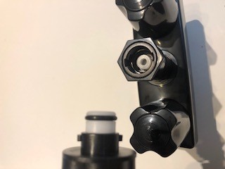 The hose is several meters long and similar to a wash down hose on a boat. The hose attaches to the breach via a bayonet fitting. The shower head is the same as many found on garden hoses with a dial head with settings, spray, cone jet etc. It is operated by a squeeze lever so after wetting down the washee lets go to suds up and the water shuts off.