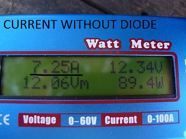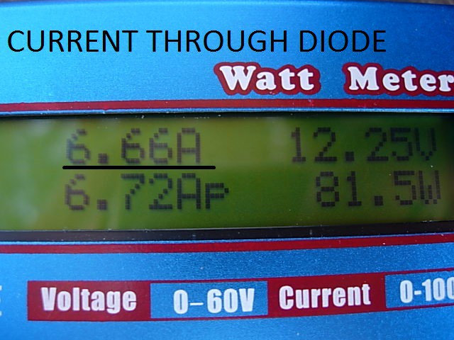 Below is a picture on how I fitted the diodes which I had to remove from the Jiffy box, to pull up, (upside down), into the open to measure the amps and heat