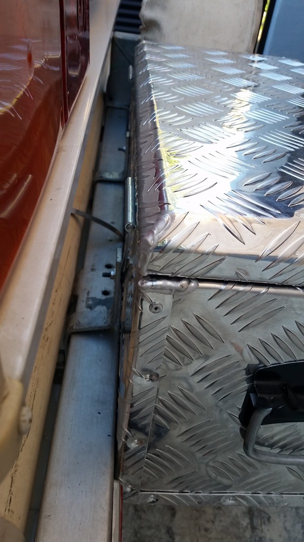 Only light weight items go in the boxes, also fitted on rear bar are PVC pipes holding aluminium poles, be carefull of the weight back there.