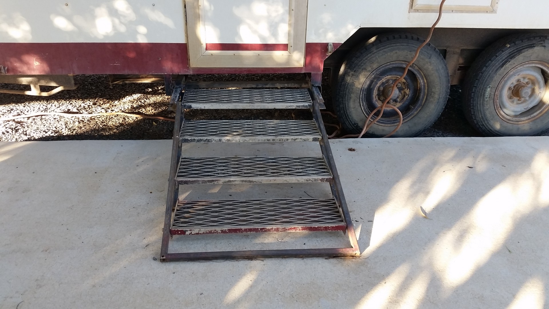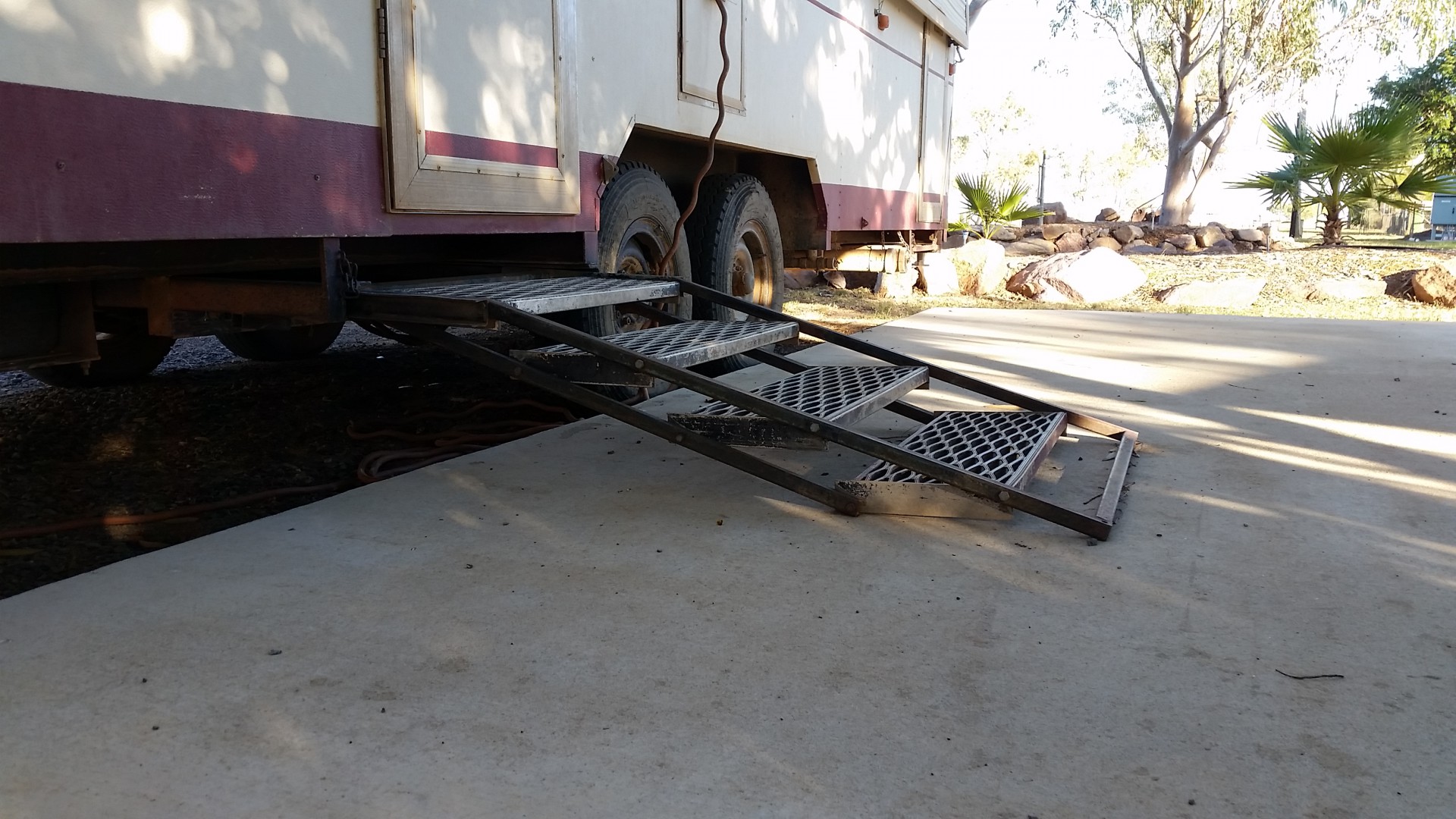 Here is a set of stairs that fold away under the caravan that we would like. A bit of over kill but it would only be once.