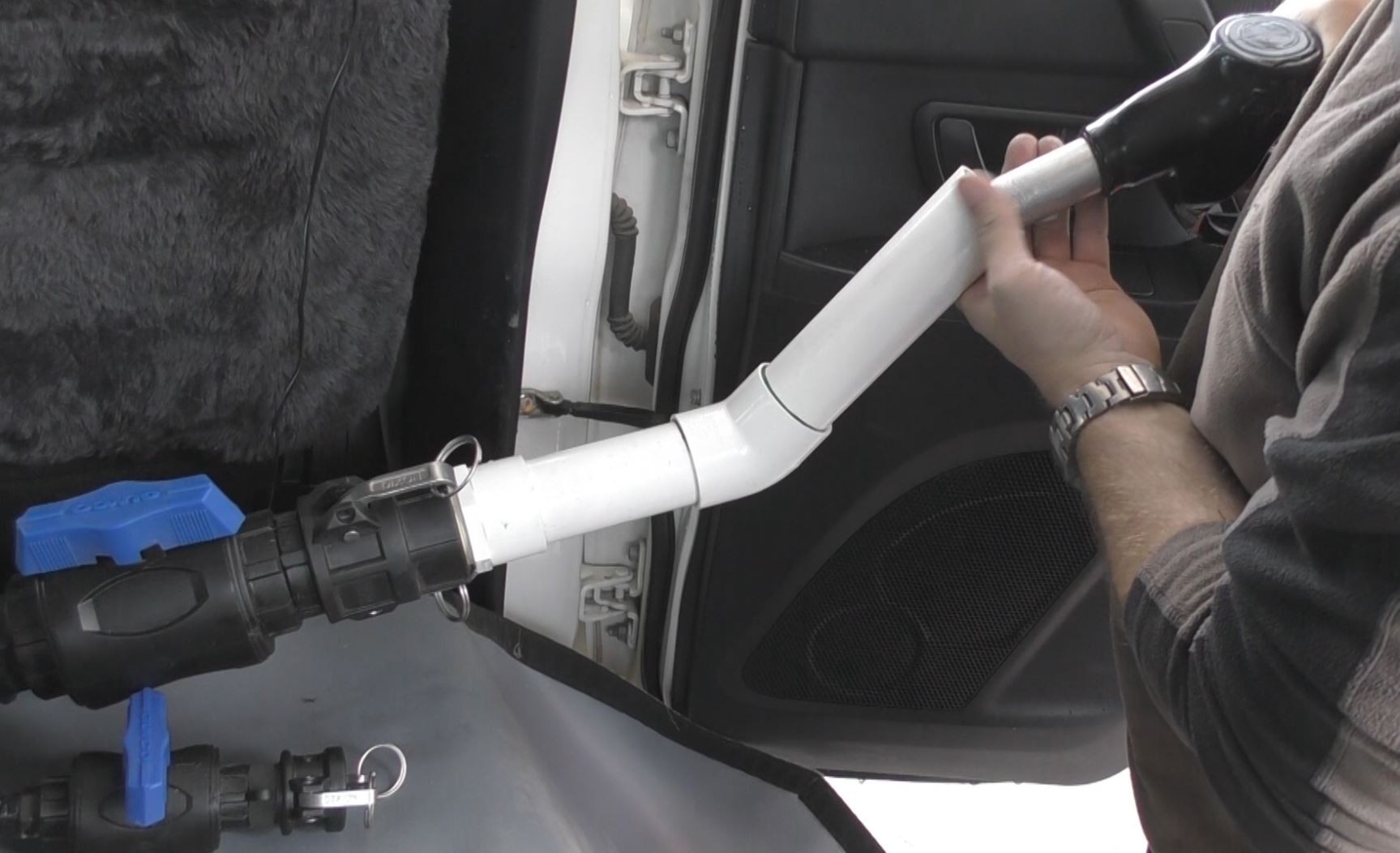 What you wont see in the pics but I covered in the video (i think) was the flap that comes down and hangs out the door you have open and stops any stray diesel getting in the car if you spill some.