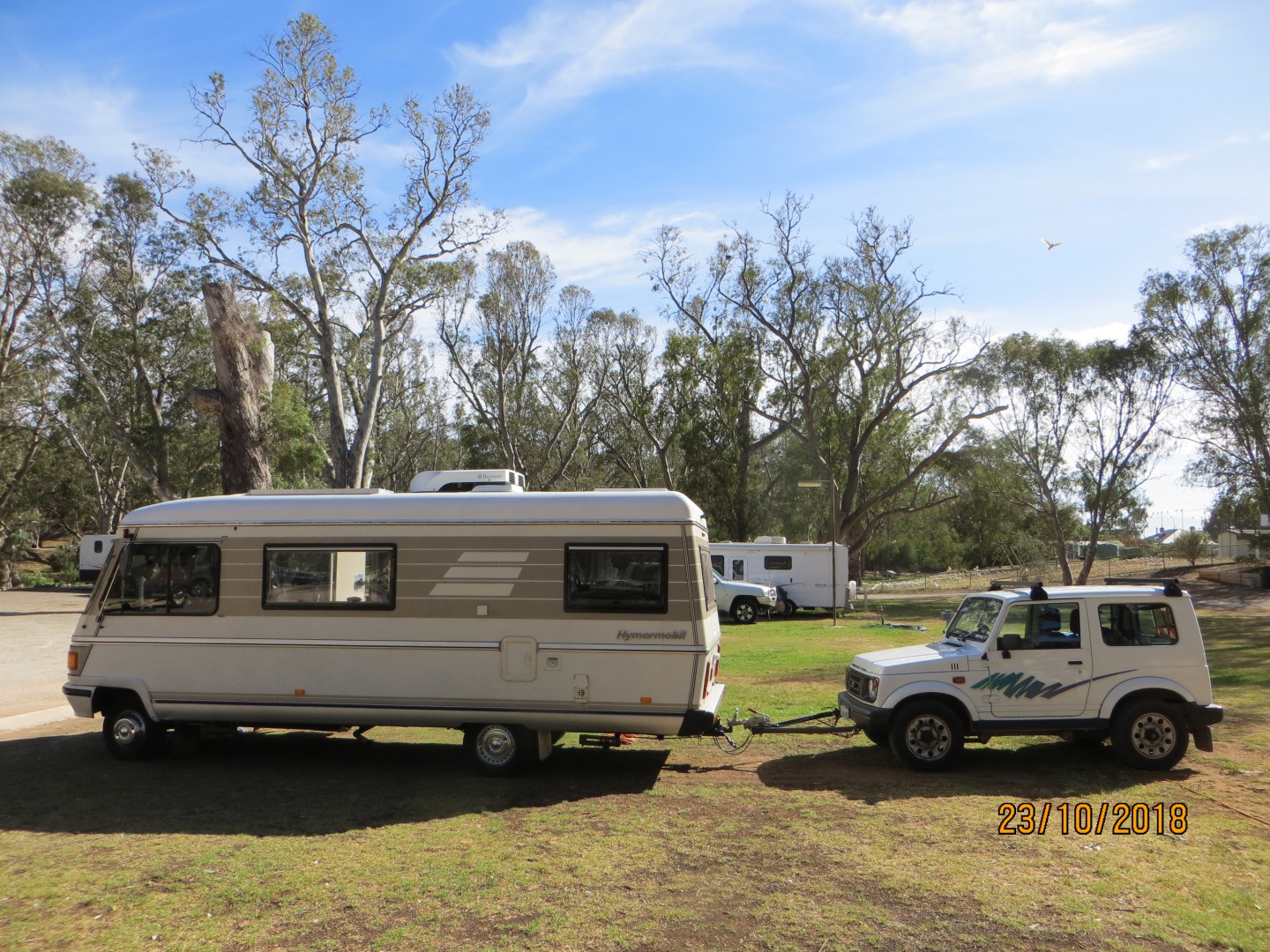 Just thought I'd post our rig that we are traveling around Australia in. We started from Mandurah, WA at the end of Aug. and are now at Wilpena Pound in SA, having clocked 5000kms. She is a German build Hymer on a Mercedes chassis and is 28 years old, we used to drive her - minus Suzuki - round Europe but a couple of years ago age and money made us decide to bring her home to WA. So after nearly 2 years of conversion to Aus. requirements and renovation we hit the road, don't travel very fast but not in a hurry. Give us a wave if you see us, fairly distinctive set up as only 3 or 4 in Australia