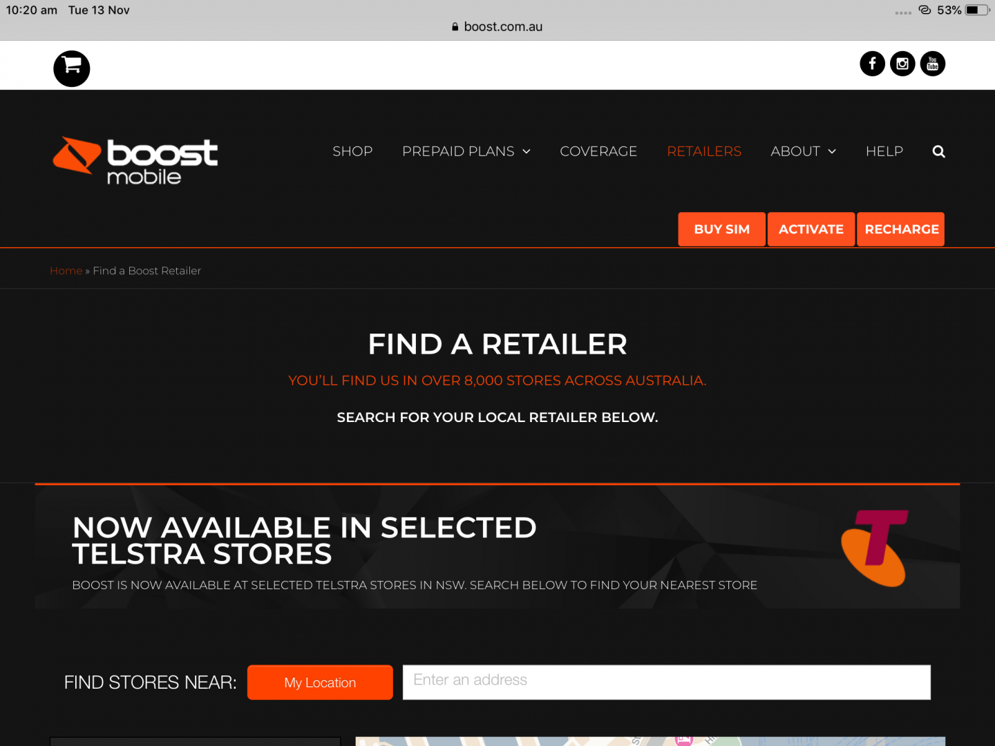Not all Telstra agents are Boost agents according to the link in my post. You could phone them.
