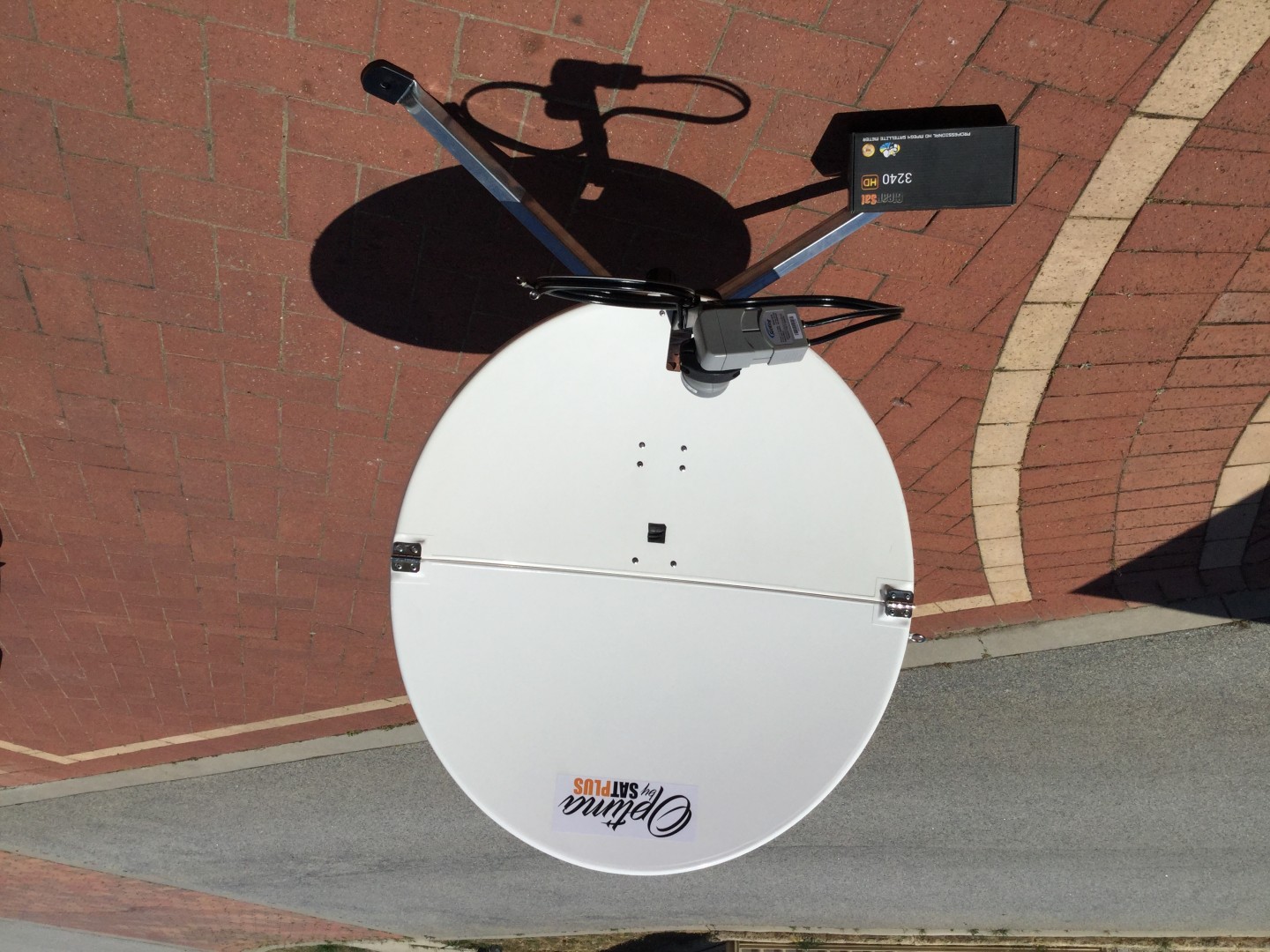 Satplus Optima T2 folding fibreglass satellite dish with twin LMB so that one programme can be recorded while watching another. Also adjustable leg tripod. Dish and stand both have padded bags. Plus Clearsat 3240HD professional satellite meter. Plus 2x 10 meter fly leads and 2 x 0.5 meter fly leads.
