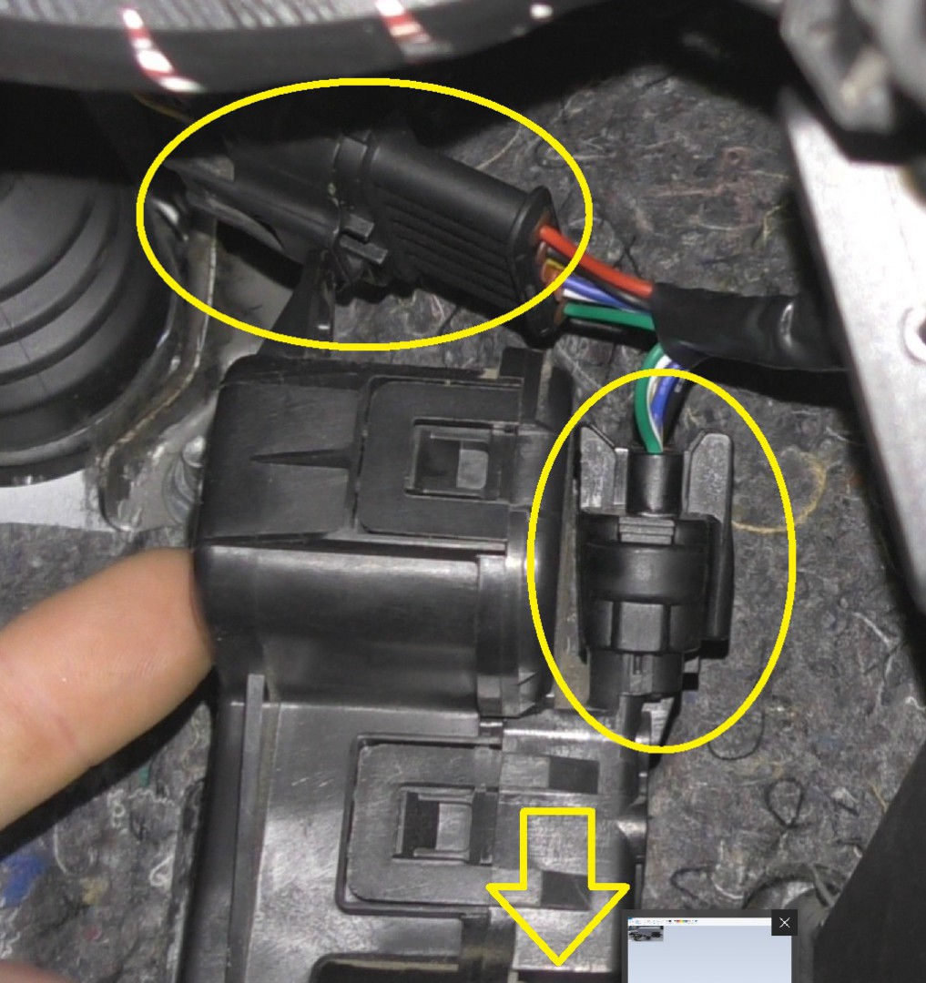 The arrow points down to the accelerator peddle for reference.