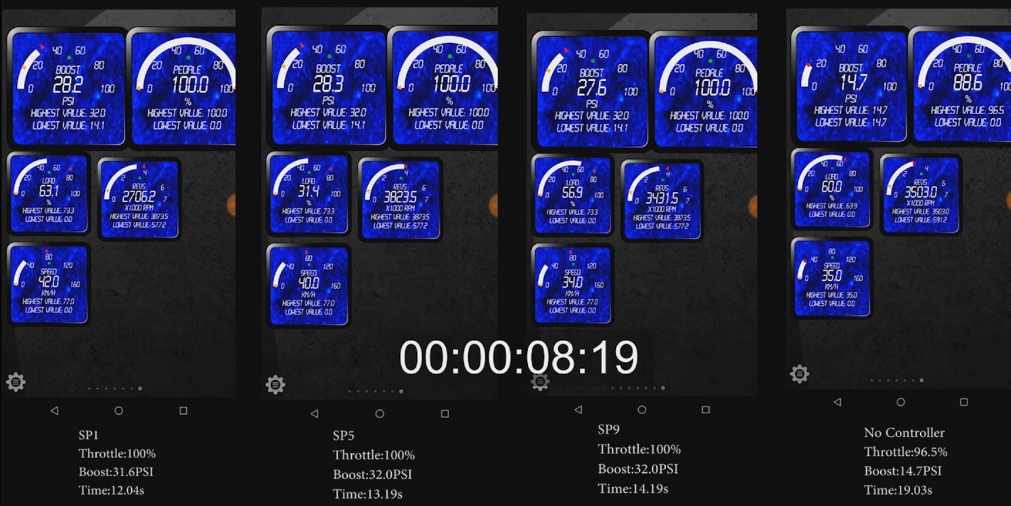 Boost with the controller reached up to 32PSI with no controller staying at 14.7.