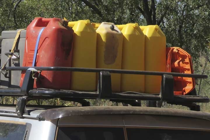12.000 Roof rack rails & 1 pair cross bars x1 _3.600 Second pair cross bars x1 _4.000 Solar panel & tyre bracket x1 30.000 Wheel second spare x1 _4.600 Fuel rack aluminium x1 36.000 Fuel tanks 10 litres x4 _3.000 Fuel rack aluminium small x1 _9.000 Fuel tanks 5 litres x2 _0.080 Fuel tank nozzle x2 15.200 Solar panels x1 12.000 Sand tracks x4 12.000 Awning x1