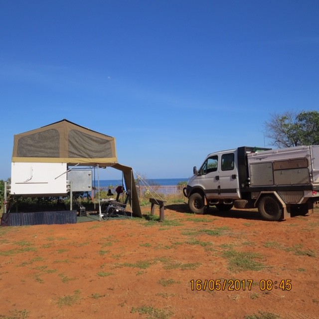 I do agree with Peter that if/when we find the Wedgetail inconvenient I would go to a motor home over a caravan - the reason we chose the slide-on was because we did not want to be towing anything. Here's a couple of pics, first one showing a Wedgetail on an Iveco next to ours when we were camped at Cape Leveque last year: