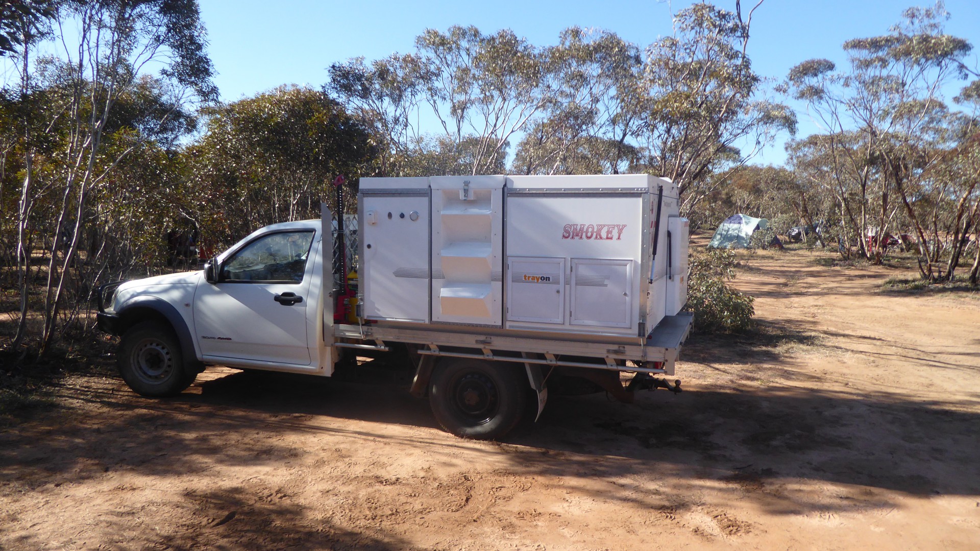 I have a Trayon slide-on. It is more than I need, but was purchased to entice my wife into camping. She is a 5 star traveller and is accustomed to guided tours, full room service, chandeliers, marble floors and porters. Still, the compact folded size of the rig measures 2.2m x 1980x 1.2m. Unfolded and with the annexe, it is the equivalent of a 16 ft caravan! Two burner stove top with grill, 100l fridge/freezer, hot water mixer tap and sink, ample bench space, dinette table and queen sized bed. Additional luxuries are a (hot) shower, annexe and porta potti. 5 minutes to set up if still on the truck (for short stays) and another 10 min to jack it up off the tray to free the tug for exploring. The annexe fits neatly with a solid floor velcroed to the sides and is easily erected (10min?) for extended stays of a couple of nights. Totally waterproof!