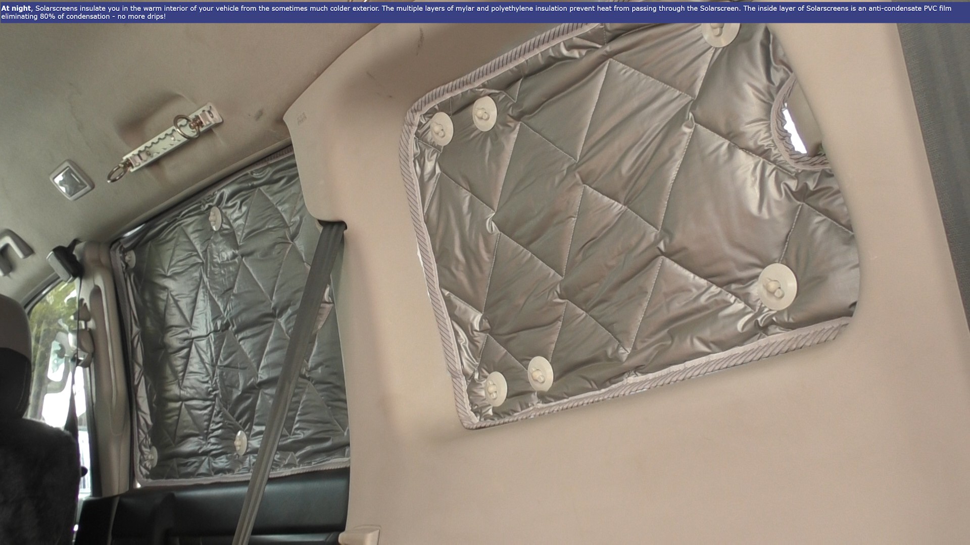 In addition to blocking visable, IR and UV light, to keep it cool in summer and warmer in winter, the also do a good job stopping anyone taking a peak over the back of the Paj when parked up.