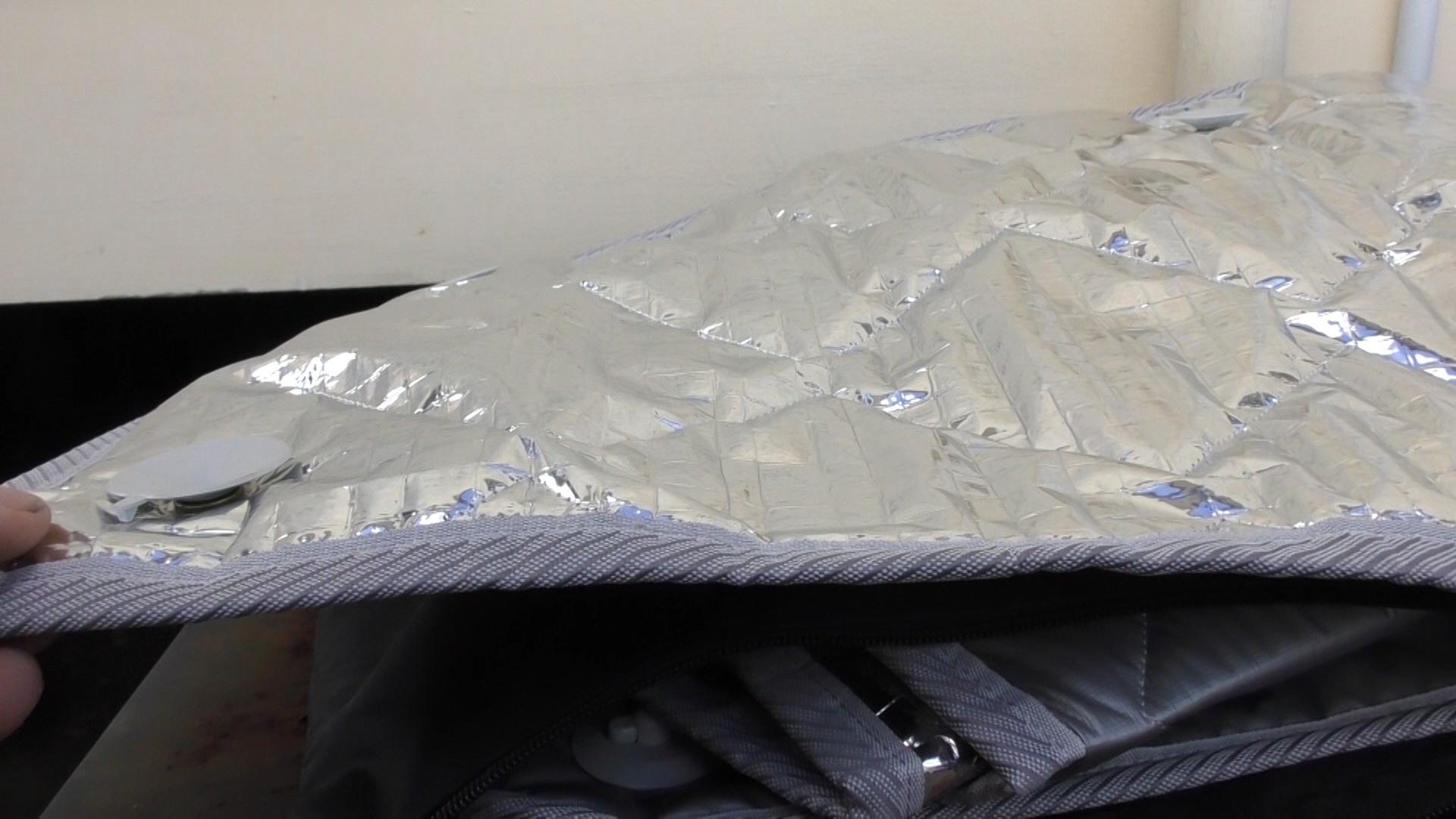 In the home we have piled in Aircell (building bubble wrap) (unfortunately no rebates from the government) works well. The Aircell works brilliantly retrofitting under roof tiles without lifting a single roof tile, but hard work to say the least (you may need two templates due to spacings (cut with scissors)), but the foil coating comes off for day to day use in the car or caravan so is not suitable to cover windows in this situation. Where as the car windshield sunscreens although thin do last (one could double them up), but I do use the better quality ones, still cheap enough though to allow for a few stuff ups! I have used some of the Aircell around the fridge & it works well.