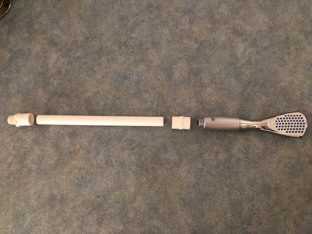 I have recent purchased a new 16.67-5 Jayco Journey Outback and my first project was to rectify this by extending the shower head from the hose with a length of PVC pipe and a couple of screw fittings - all from Bunnings, finishing off with a few coats of silver paint.