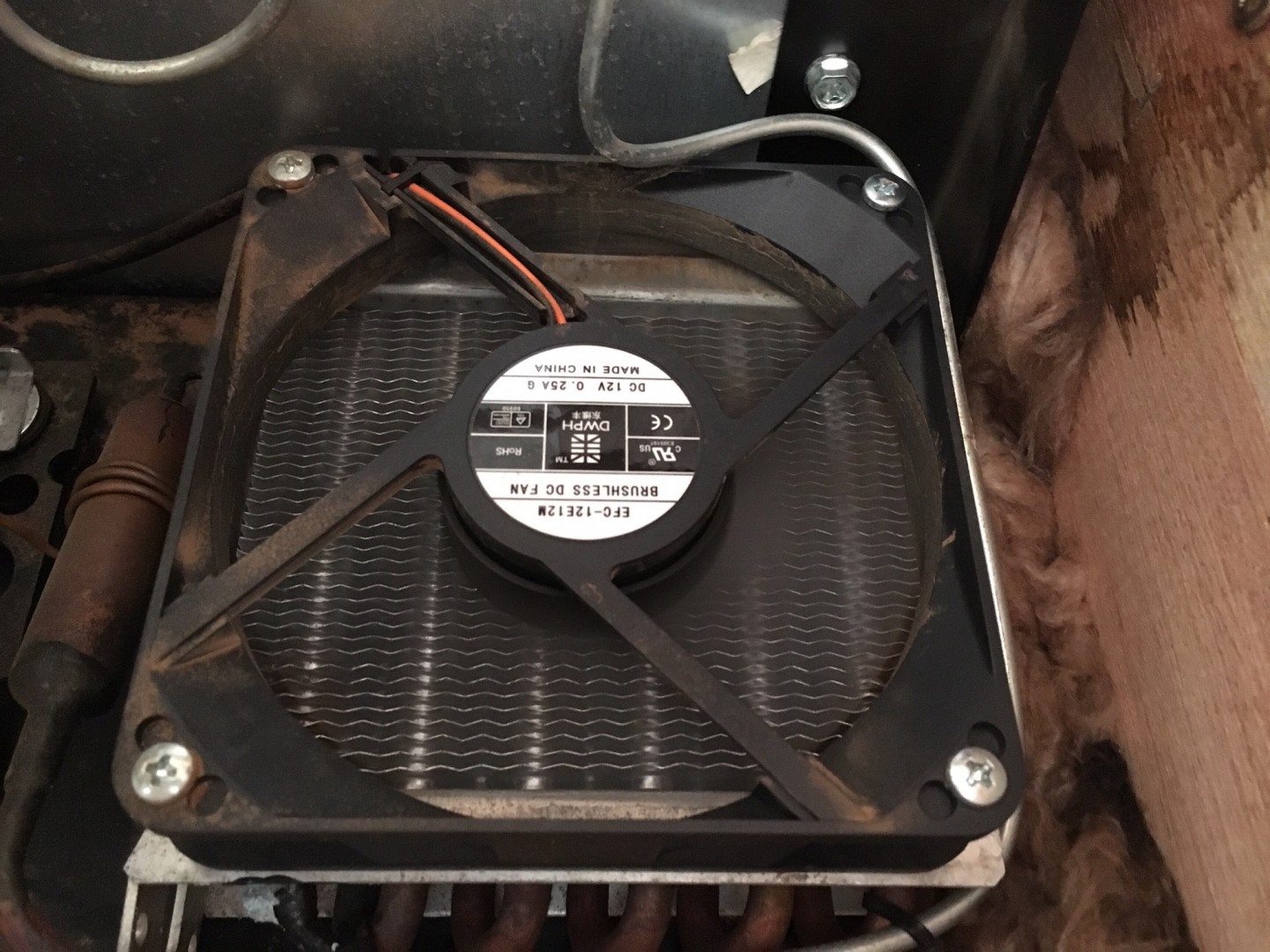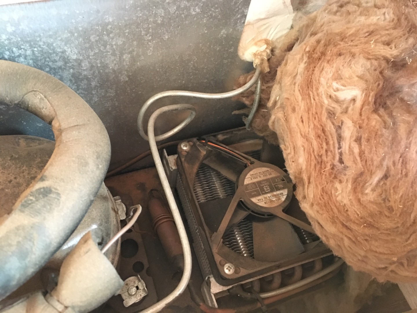 190 lt compressor fridge not working properly, looked up top vent and wool insulation was laying across condenser fan. Insulation had expanded and collected a bit of red dust and became heavy, check your vents.