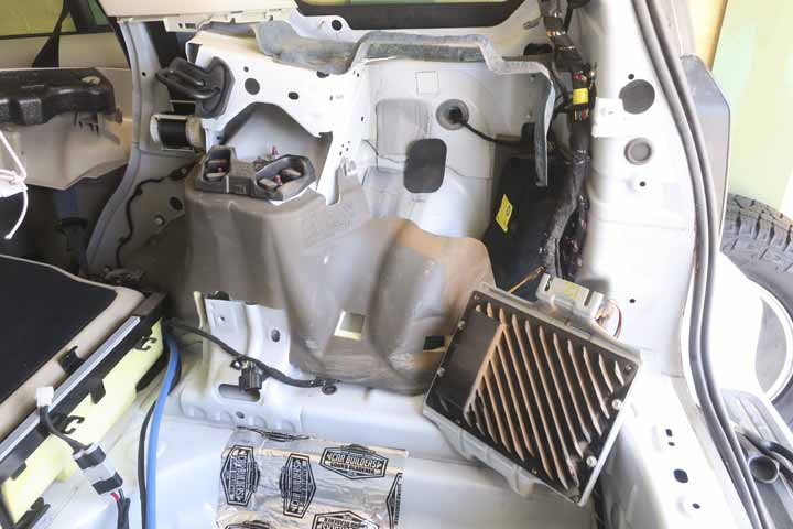 Also stuck some foam in the gaps under the vertical section of the rear seats. Will have to remove to fold seats down, which we rarely do. That makes a bit of a difference.