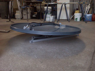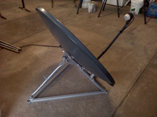 Made from recycled dish , bought from Lifeline's recyle centre. And made to suit my 40 years experience with Sat dishes. The easiest of dishes to set up , only one adjustment when it is ground mounted . 85 cm dish good signal pick up . I have a solar panel carry bag I think it will fit in.