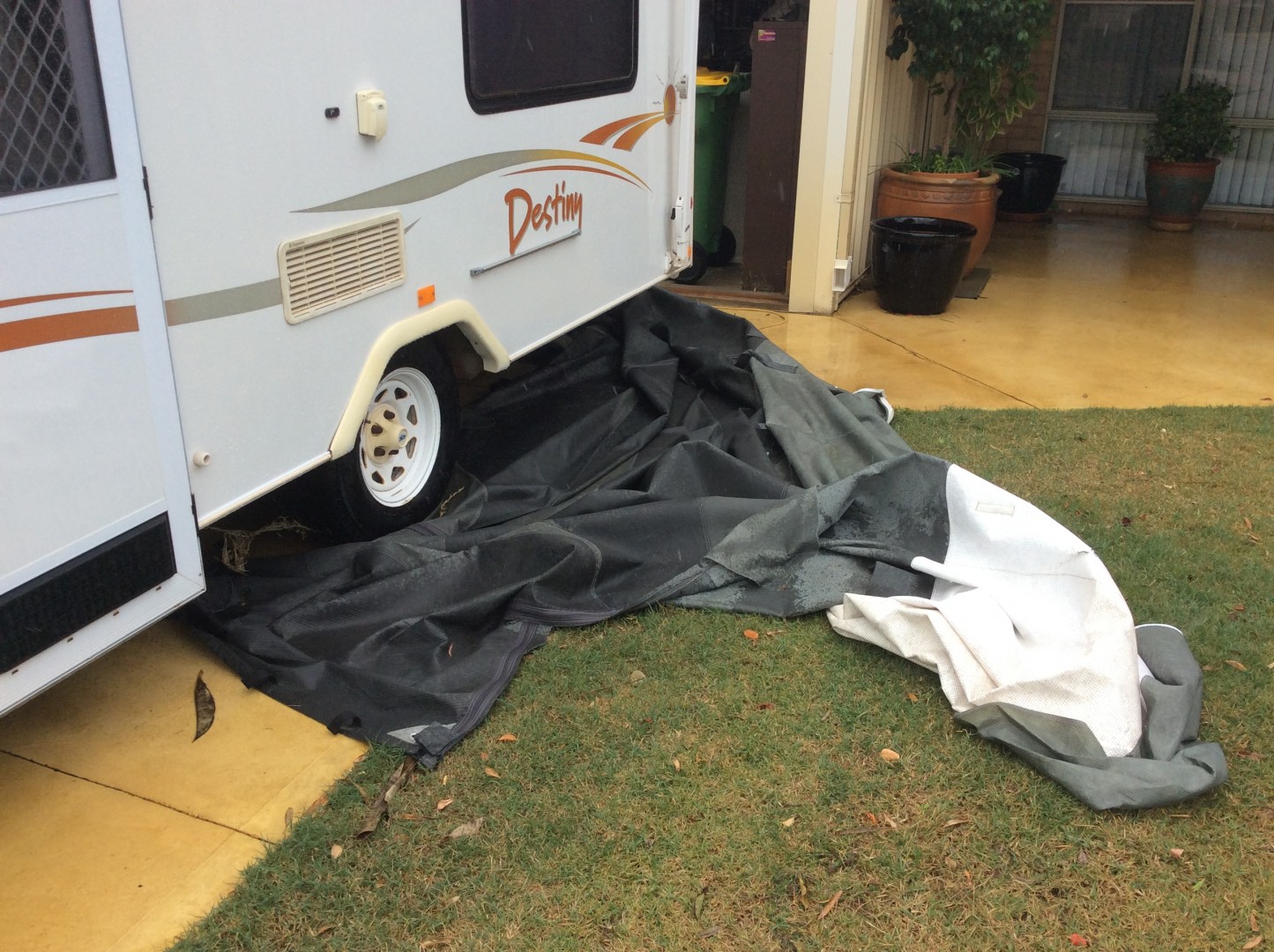 returned from having cancer scan at hospital and found a storm front had come through and ripped the cover off the van.Totally destroyed it.