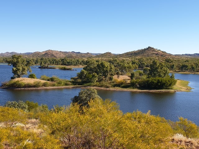 JayDee you are correct it is the Corella Dam near Cloncurry. The crocodiles are freshies and you can see them on the islands near the dam wall every day.