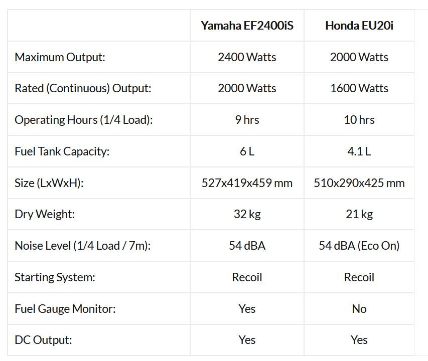 Inverter Generators Honda EU20i v Yamaha EF2400iS side by side