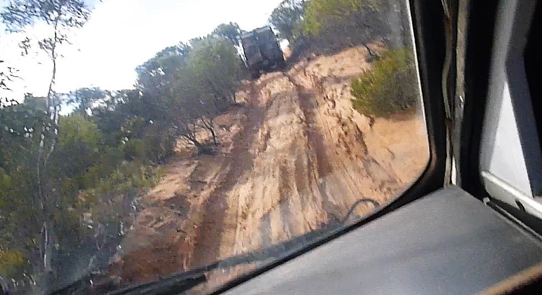 Getting people to travel N-S when towing will simply mean that the N sides get destroyed too. Random screen shots from a video clip showing the scalloping. Certainly not the worst, but you can see how the vehicle will rock from side to side and many smaller 4WDs will be dragging their diffs increasing the wheel spin tendency even more..