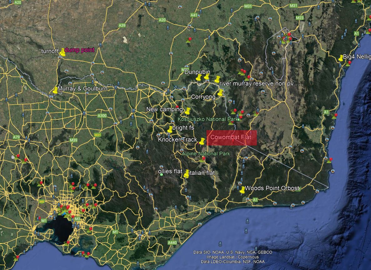 The Murray River starts near Cowombat Flats,you used to be able go across from the Davis high Plain Track to see the the plane crash, till they closed the rd. if you are coming down to see Gheehi, it pays to follow River Rd. in NE Victoria so many free camps and so much to see.