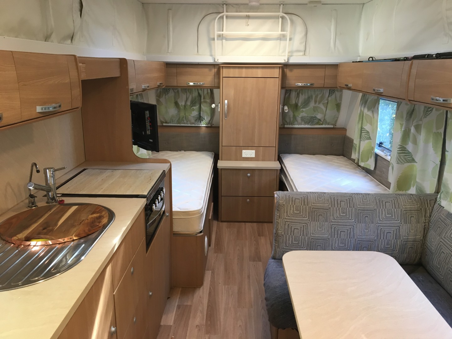 Single beds enabling additional floor space and overhead storage