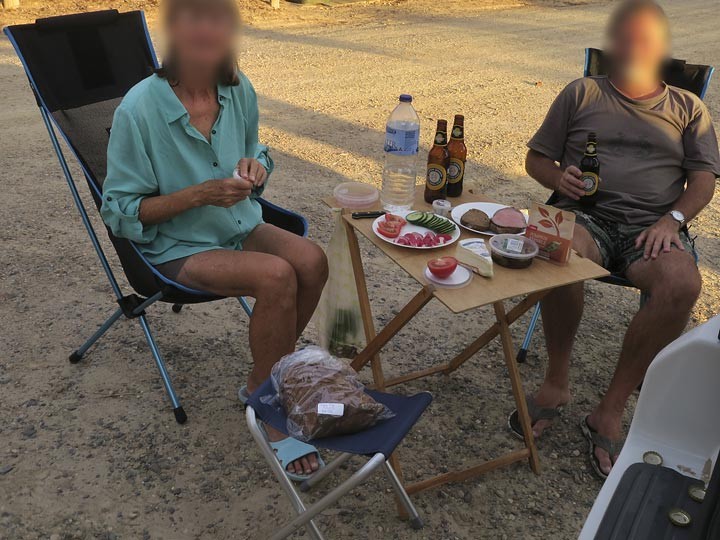 We also have 2 stools (cheap aluminium) to put our feet up. We also bought the large Helinox table, although well made, we prefer out home made timber table, better height & folds flat anyway, so we don't really use the Helinox table anymore.