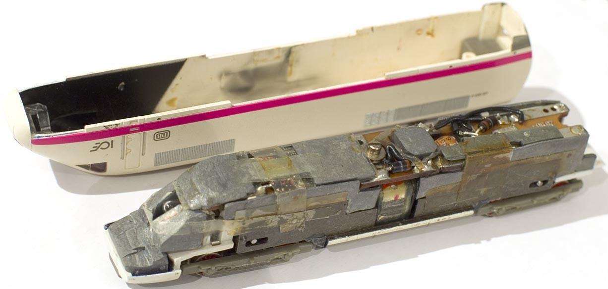 This little project took a long time so being bored is not an option. "Turbo charging" Z gauge. Cutting 2 locomotives almost in half & joining them together to make a twin engine locomotive with masses of torque & adding lead to increase weight & traction tyres. A lot of work to say the least.