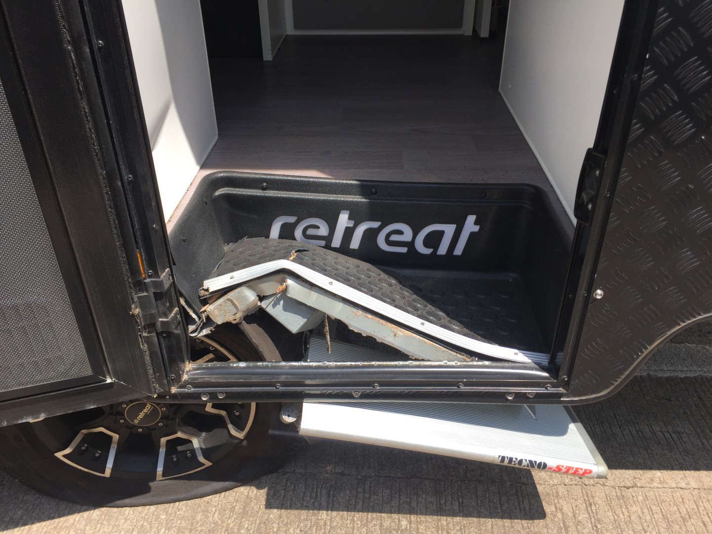 Bagmaker the inside wall of the tyre wall was cut by the step when the wheel crashed into it actually looked like someone had stabbed it with a carving knife. I'm not saying that the cheaper Chinese brand tyre contributed to this incident I just meant that I want to reduce the risk of any sort of incident happening as we may not get out of it as lightly next time.