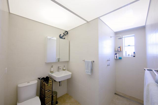 In one bathroom we have the entire ceiling illuminated like a lift ceiling. Really nice light.