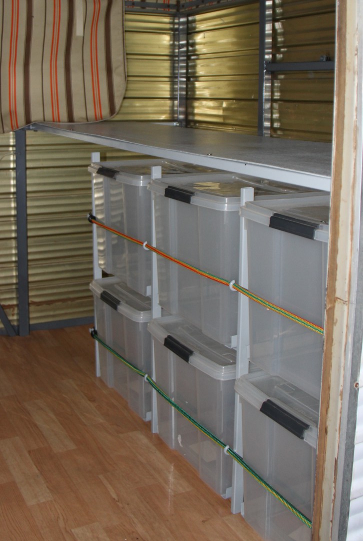 Lids can be colour coded for different groups of "stuff" but also you can generally see through the sides to save opening tubs unnecessarily. In my "slide on " camper I built a light weight steel frame to enable the bottom tub (draw") to be slide out without disturbing the tub on top.