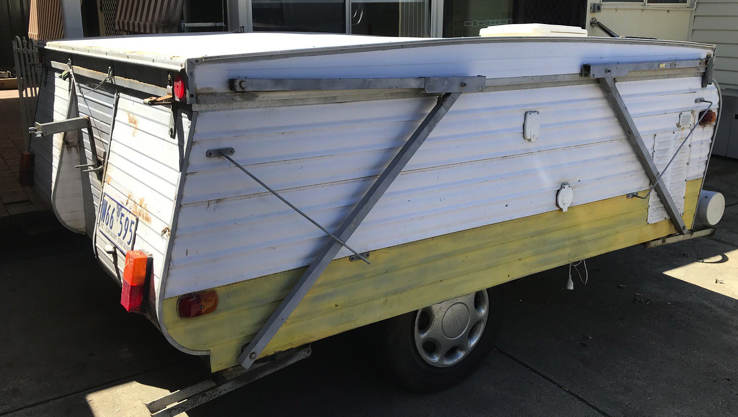 Can anyone tell me What Brand & Model this Pop up van is please. Also the bars on the side lift/push up to roof has a cable & spring in them. What are these arms called and how do you replace the cable in them? Cheers Darren