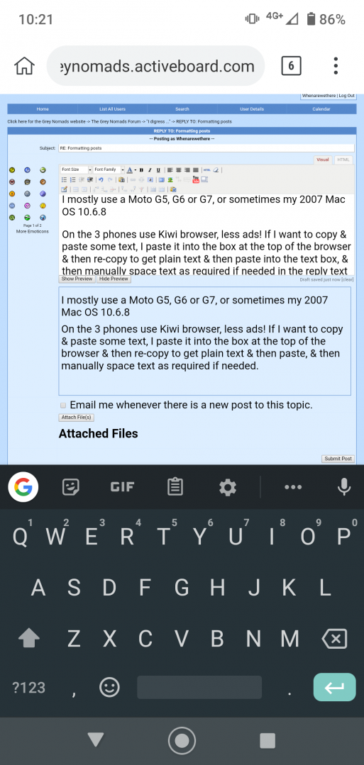 On the 3 phones use Kiwi browser, less ads! If I want to copy & paste some text, I paste it into the box at the top of the browser & then re-copy to get plain text & then paste into the text box, & then manually space text as required if needed in the reply text box.