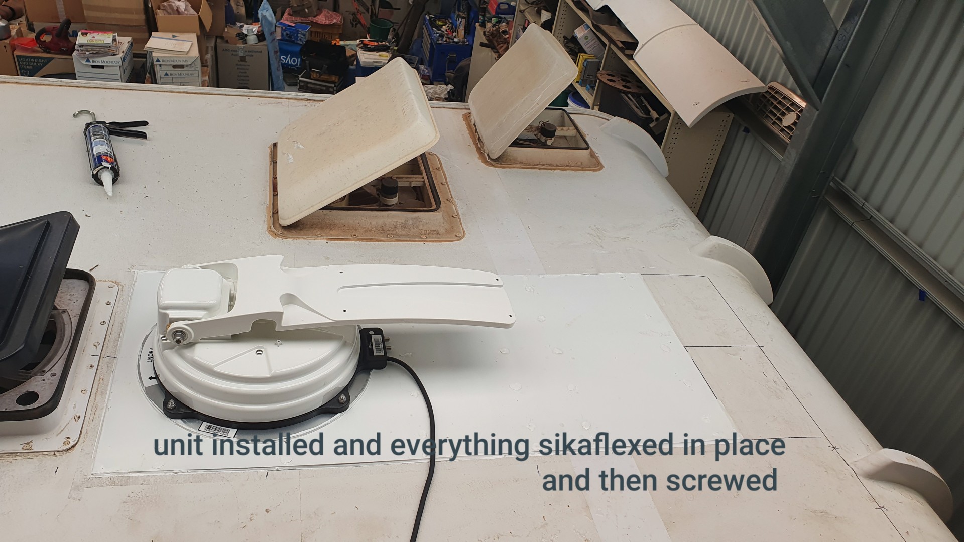 Was pretty straight forward. Plate was 900x500 x3mm aluminium etch primed and painted white. Did this as the base unit did not line up with roof battens. Plenty of screws into fibreglass roof and a ton of sikaflex to ensure my investment doesn't blow away. Whole unit including dish rests on this plate.