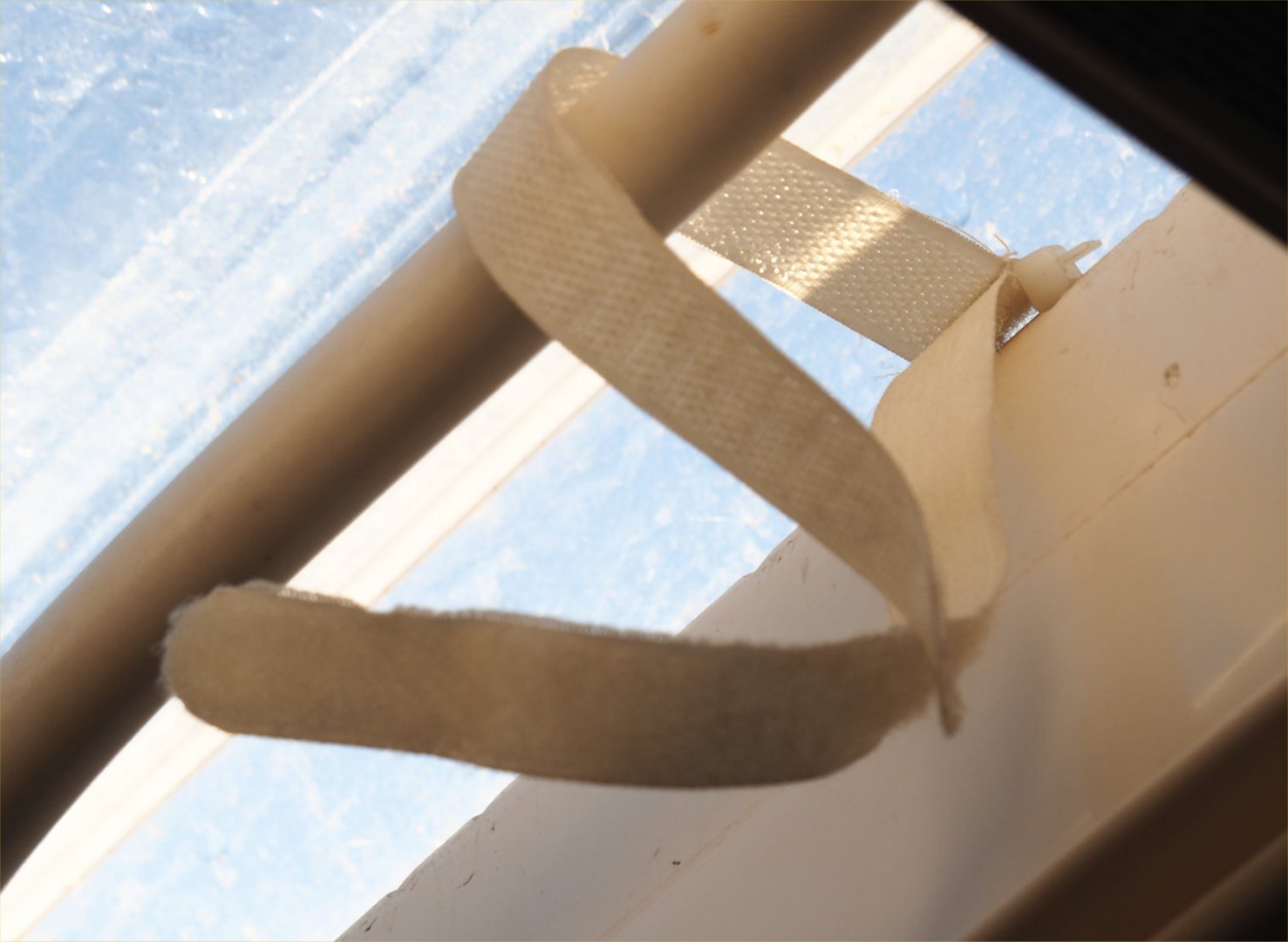 You will need a sewing machine, sew two pieces of Velcro strips about 180mm long together (getting them the right way around). Sew another line of stitching about 4mm apart, this is where the plastic tie slides in. Bend a plastic tie into a half moon and enter it into I think its the fifth hole in the vent, and maneuver it so it comes out the next hole, thread it through the Velcro passage, tighten and trim, all finished.