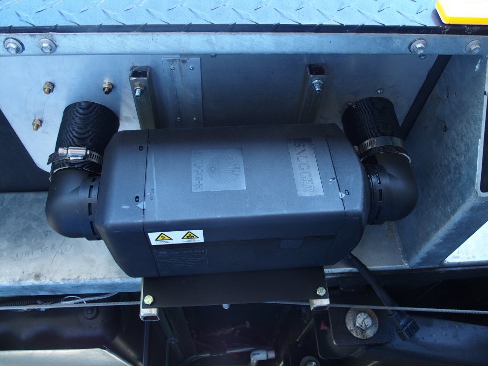 I dont have a front boot, mine is mounted on the front of the caravan on the same side as the fuel cap on my patrol. I manufactured an aluminium checker plate cover for it and had it dipped the same colour as where its mounted. Fill the Patrol then fill the heater tank, no transferring fuel.