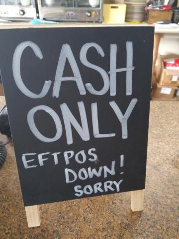 Today in Woollies we waited ages at the checkout because the system was down and the customer in front of us only had a card. No cash. All other checkouts were the same. We are cash customers and simply had to wait while staff ran around trying sort it all out. Society is becoming captive to technology. Imagine the day that the power goes out for more than 24 hours! No ATMs. No eftpos. No power to charge our dumb phones. Besides I like the smell of bank notes!!!!!!