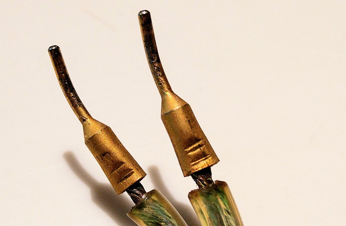 Audiophiles like to use extremely heavy gauge speaker wire & use gold plated pin lugs on the end. This is a pretty poor example!