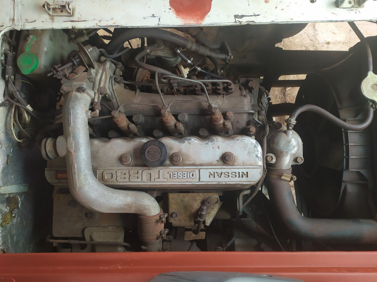 Note your new engine is an FD33 on the plate and was not originally fitted with a turbo. They are direct injection and will give better fuel economy too. However note that these buses are 30+ years old and the original engine (or diff) may have been changed so you should double check the numbers etc. Might have been changed just like you are doing now ! The information plate "rivets" look dodgey on yours anyway ?